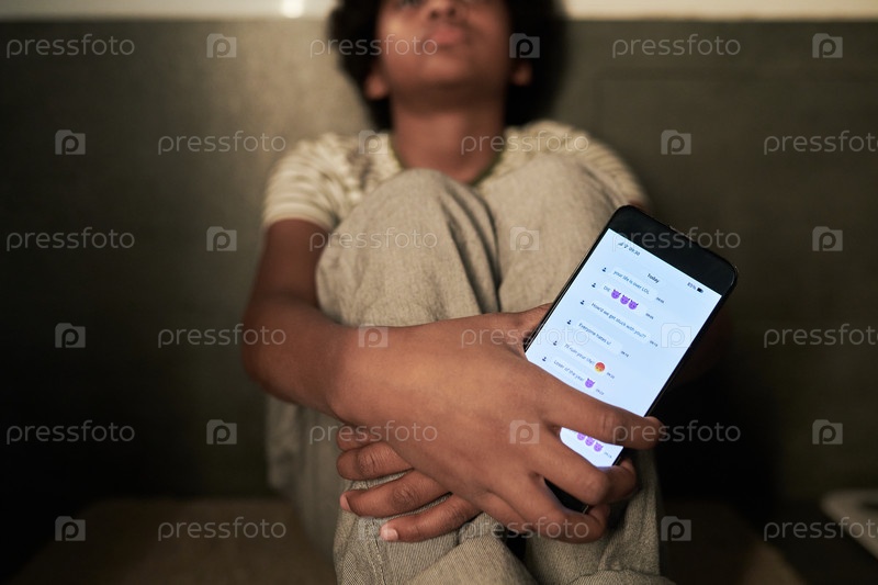 Сидеть в помещении, держа смартфон с видимым экраном приложения