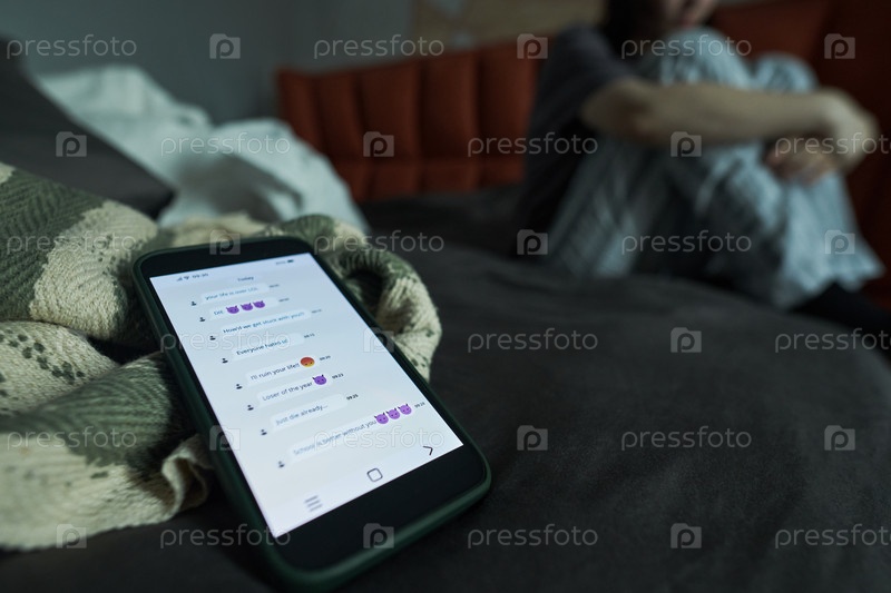 Смартфон помещен на кровать, показывая приложение для обмена сообщениями