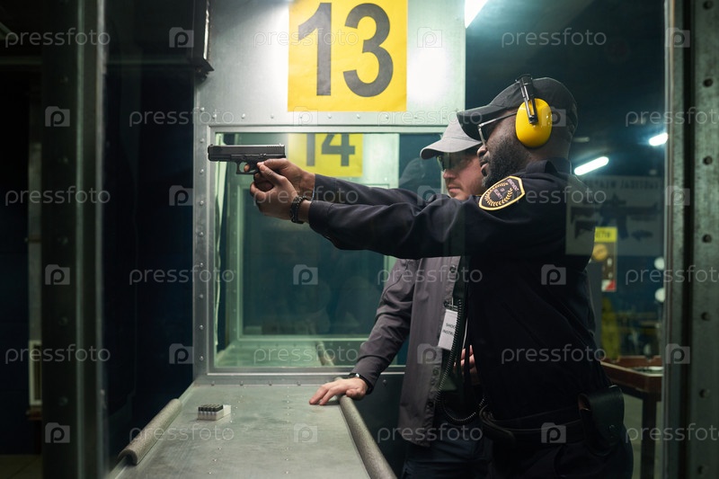 Инструктор демонстрирует методы стрельбы из пистолета на расстоянии