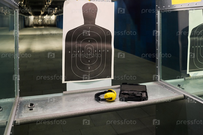 Практика стрельбы на крытой стрелковой площадке с защитным снаряжением