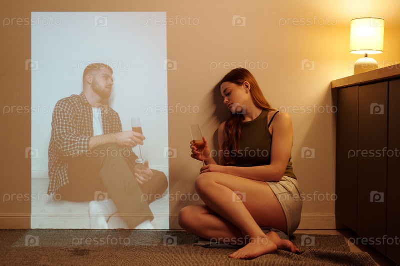 Сидящий рядом с проекционным изображением мужчины, пьющего женщину