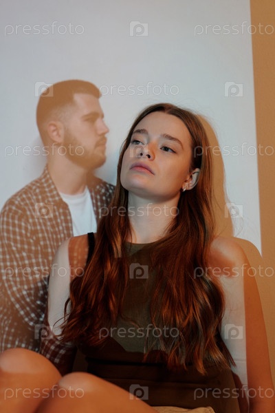 Портрет женщины на переднем плане с мужчиной в фоне