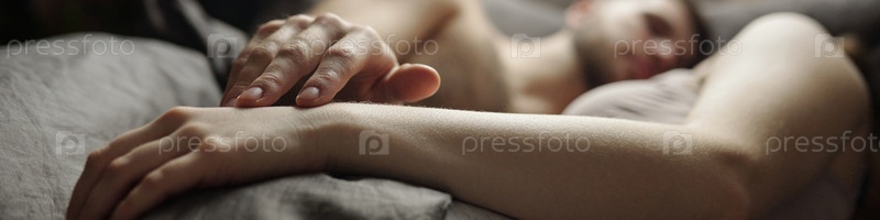 Спящий человек, отдыхающий на удобной кровати