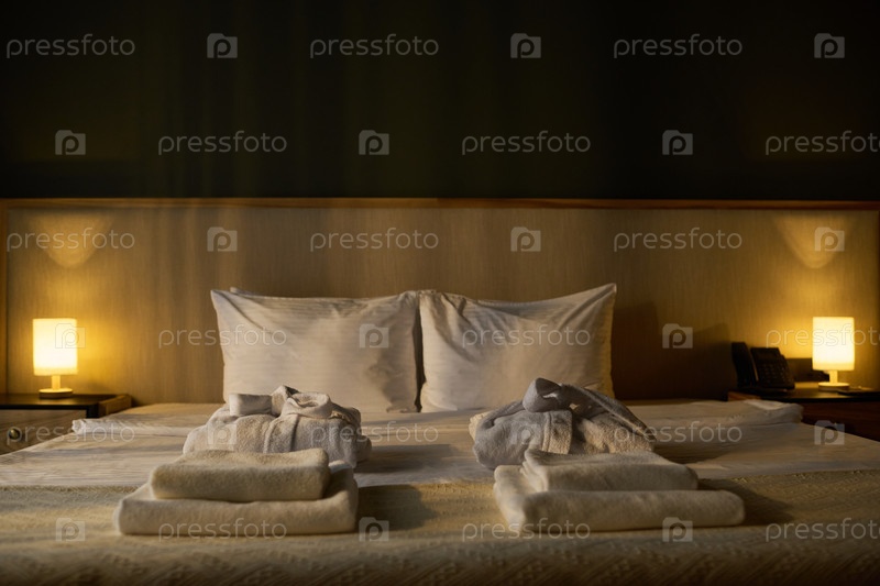 Уютный гостиничный номер с аккуратно устроенными полотенцами на кровати