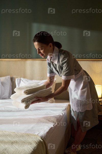 Хозяйка отеля готовит комнату в дневное время