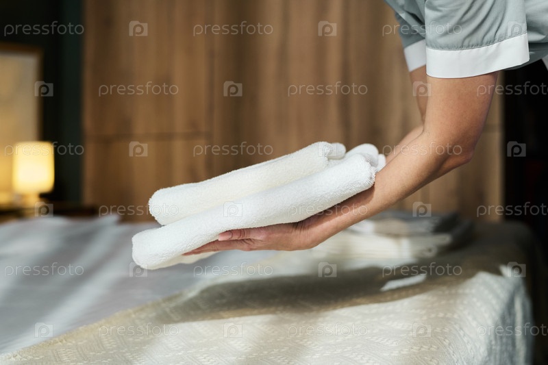 Человек, готовящий чистые полотенца в спа-устройстве