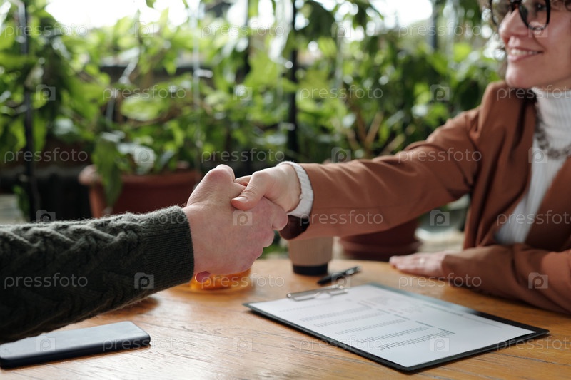 Деловые люди, пожавшие руки в офисной среде