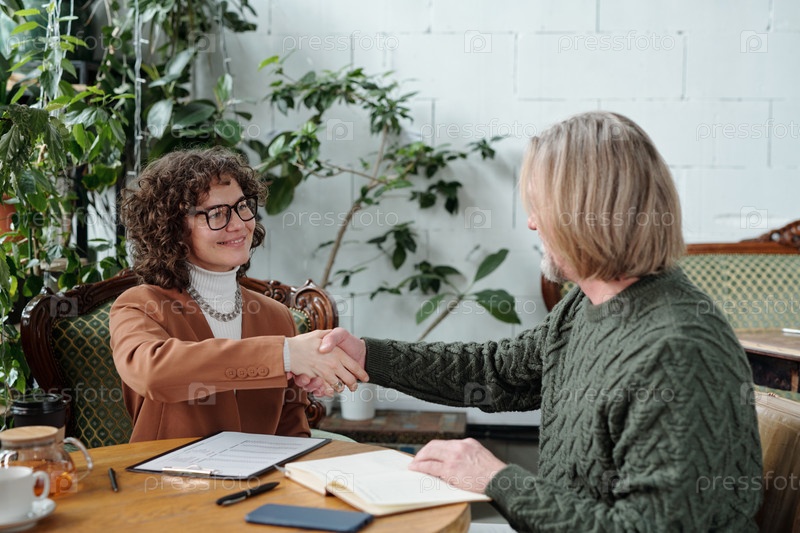 Профессионалы пожимают друг другу руки в обычной деловой обстановке