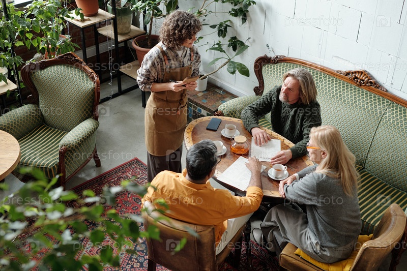 Обсуждение бизнеса в уютном кафе, наполненном растениями