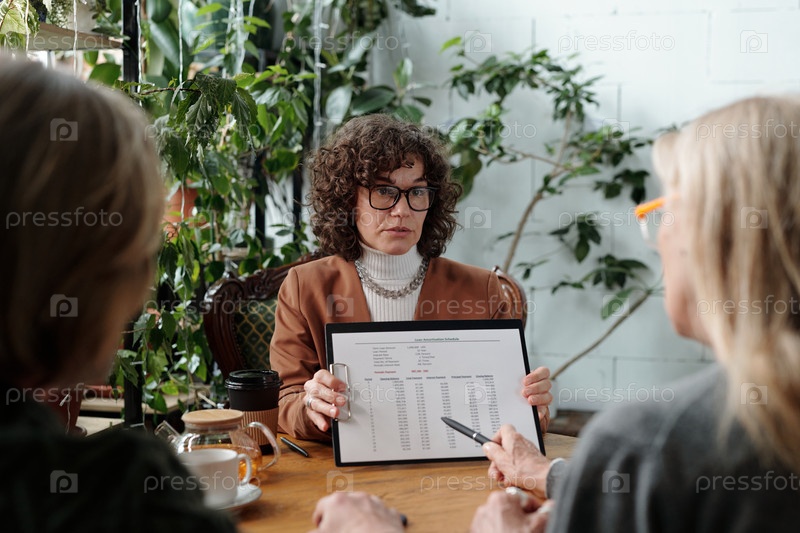 Обсуждение финансового отчета во время деловой встречи