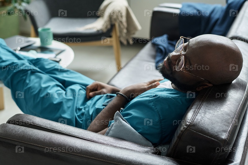 Афроамериканский медицинский специалист расслабляется во время перерыва