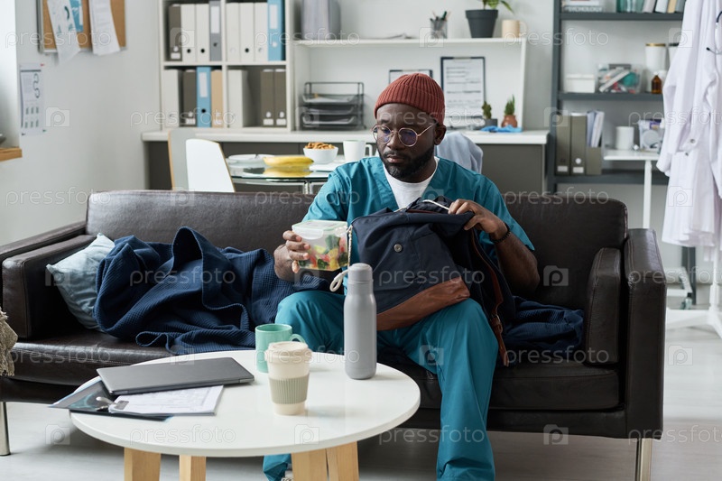 Афроамериканский доктор, готовящийся к работе в офисе
