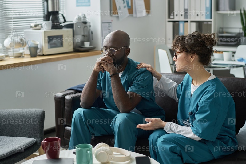 Врачи, ведущие дискуссию в современной офисной обстановке