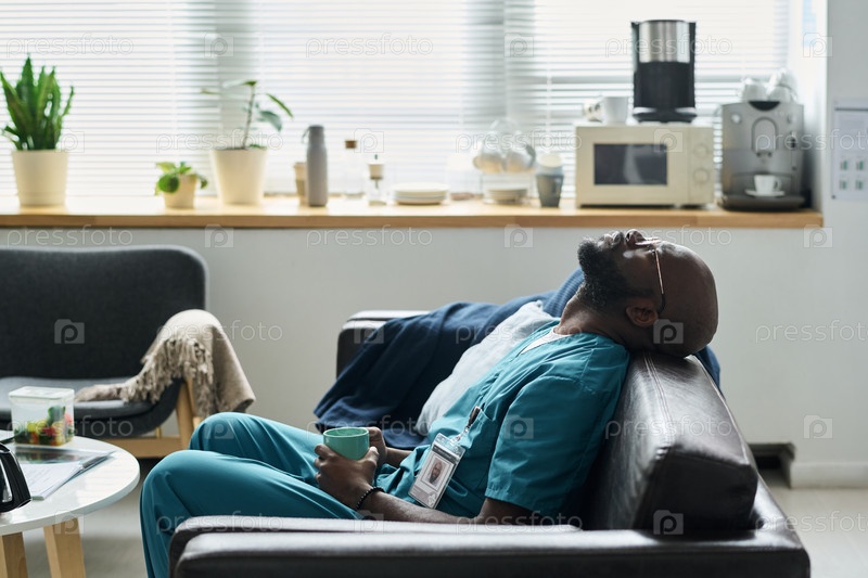 Медицинский работник отдыхает в комнате для перерывов в больнице