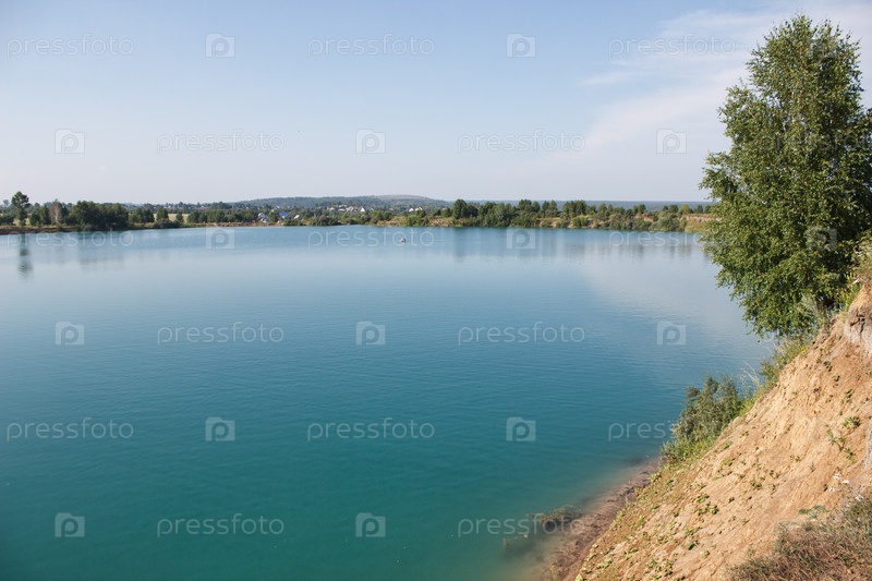 Сельский пейзаж с рекой в солнечный летний день
