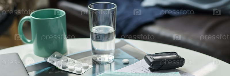 Медицинские гаджеты и принадлежности с таблетками на поверхности
