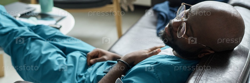 Отдыхающий медицинский работник, носящий очки