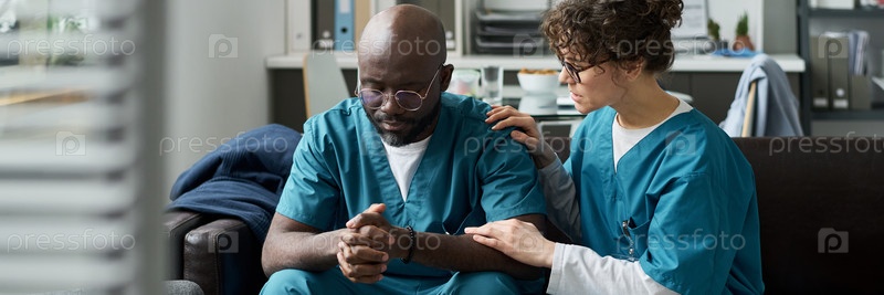 Заботливая медсестра утешает проблемного работника здравоохранения