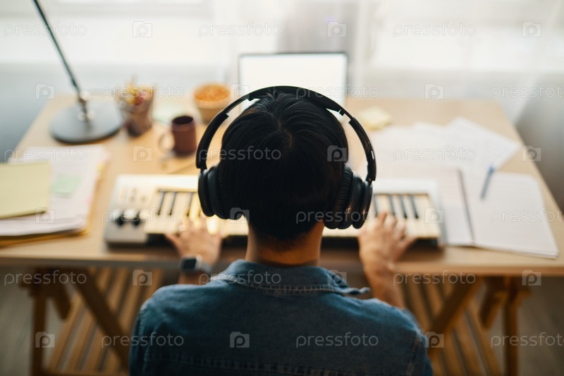 Сосредоточившись на игре на клавиатуре с помощью наушников