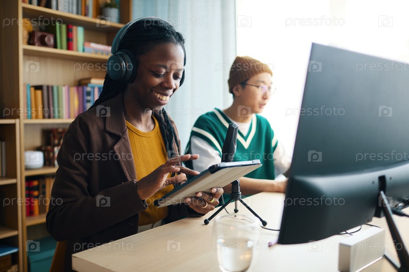 Сотрудничество в современной офисной обстановке с использованием планшета