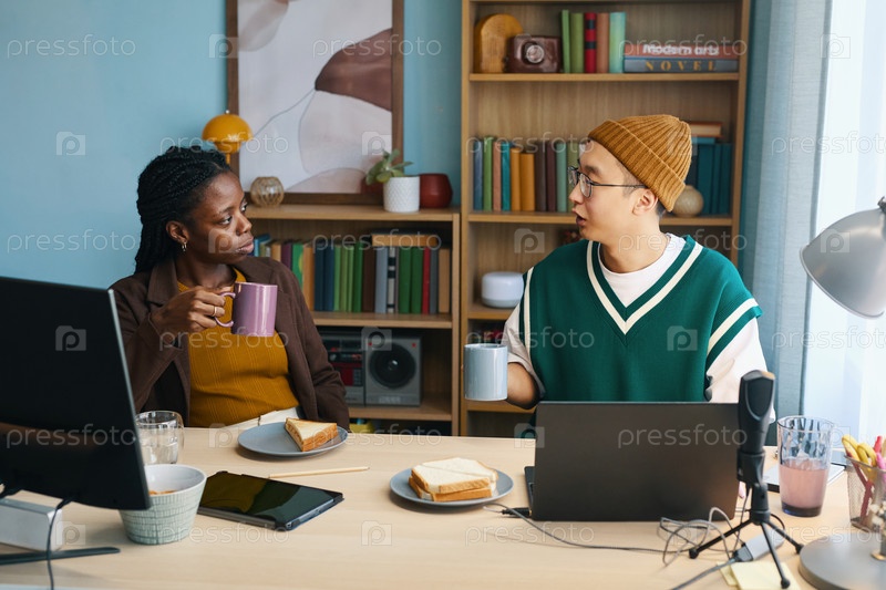 Обсуждение за завтраком в уютной домашней конторе