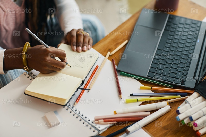 Письменные заметки в блокноте на рабочем столе с ноутбуком