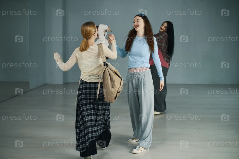 Танцевальная практика в студии с группой молодых женщин