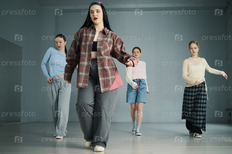 Группа женщин, танцующих в студии современного танца