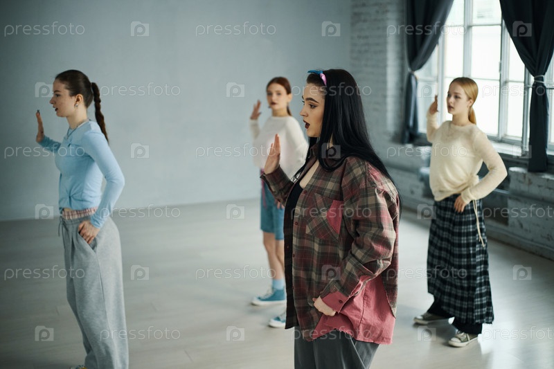 Участники танцевального класса практикуют хореографию вместе