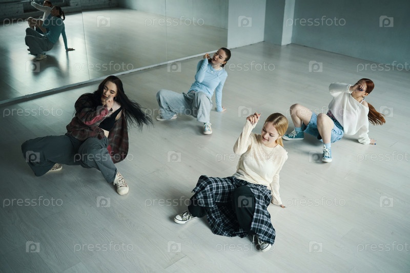 Группа танцоров, практикующих хип-хоп в студии