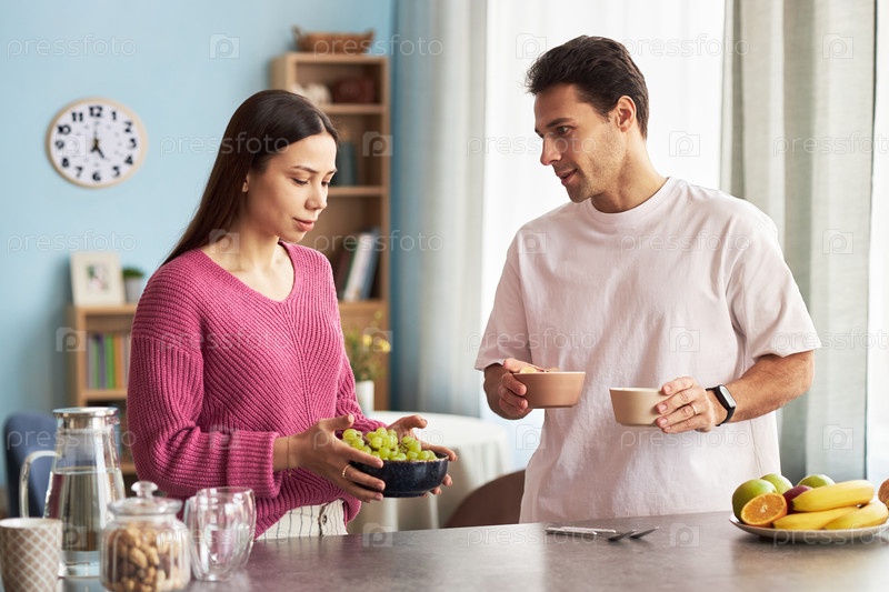 Приготовление завтрака вместе дома в семье