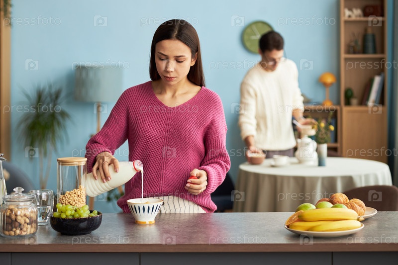 Женщина, делающая хлопья для завтрака