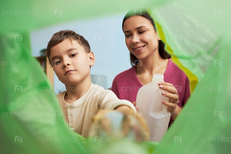 Сортировка мусора с мамой сына