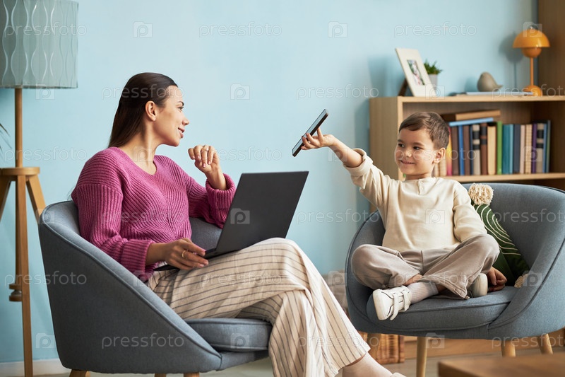 Молодая мать, работающая онлайн дома