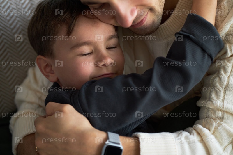 Папа обнимает своего маленького сына
