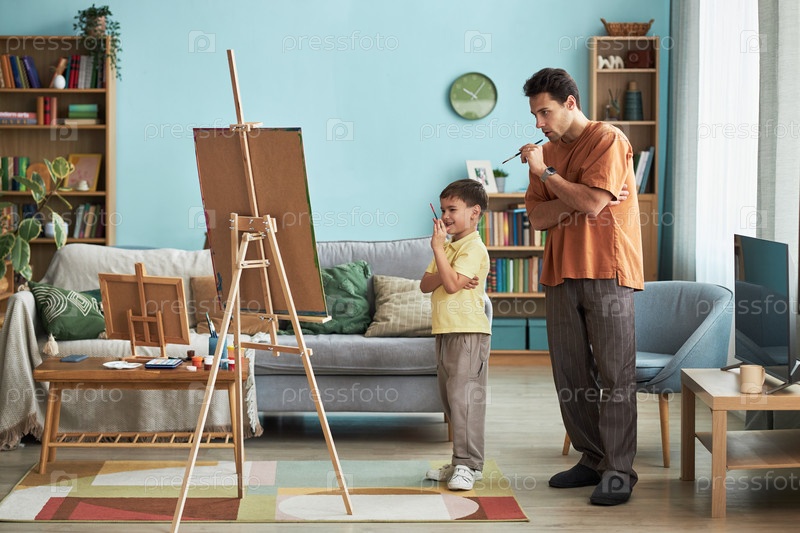 Папа учит сына рисовать