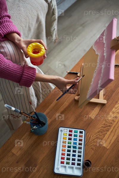 Женщина, рисующая картину во время арт-терапии