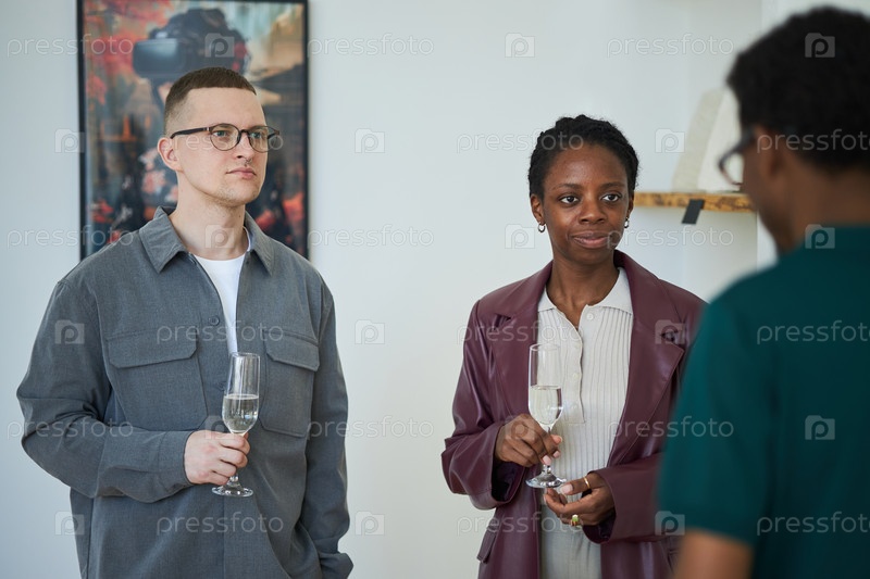 Обсуждение картин над напитками в художественной галерее