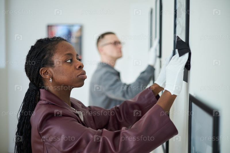 Вывешивание и регулирование настенного искусства в галерее