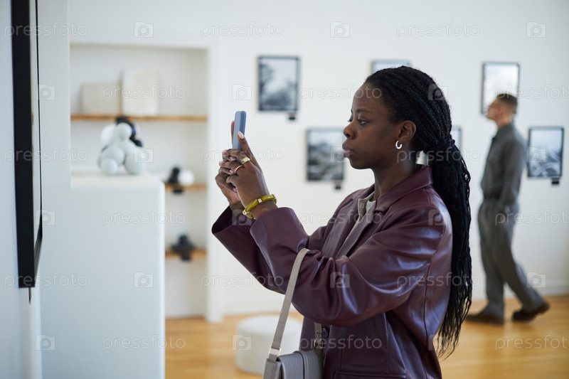 Женщина, фотографирующая в художественной галерее