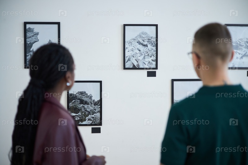 Наблюдение за произведениями искусства, висящими на стене галереи во время выставки