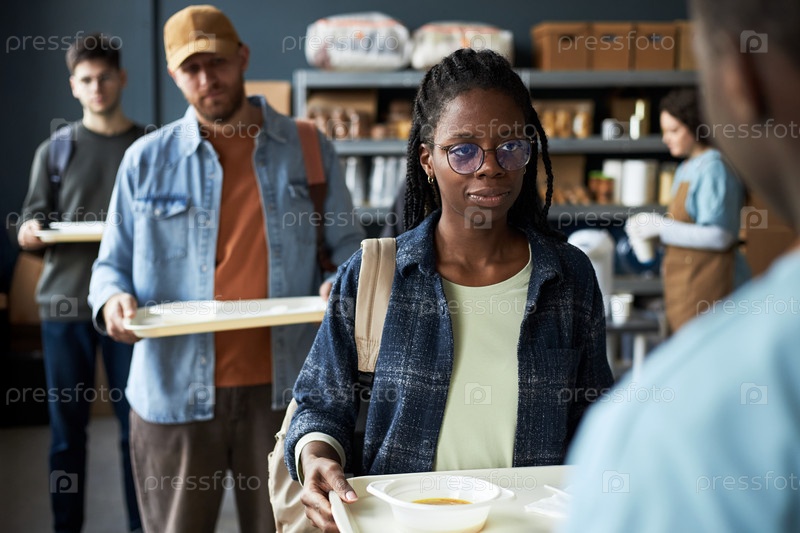 Портрет женщины, подающей еду на общественной кухне