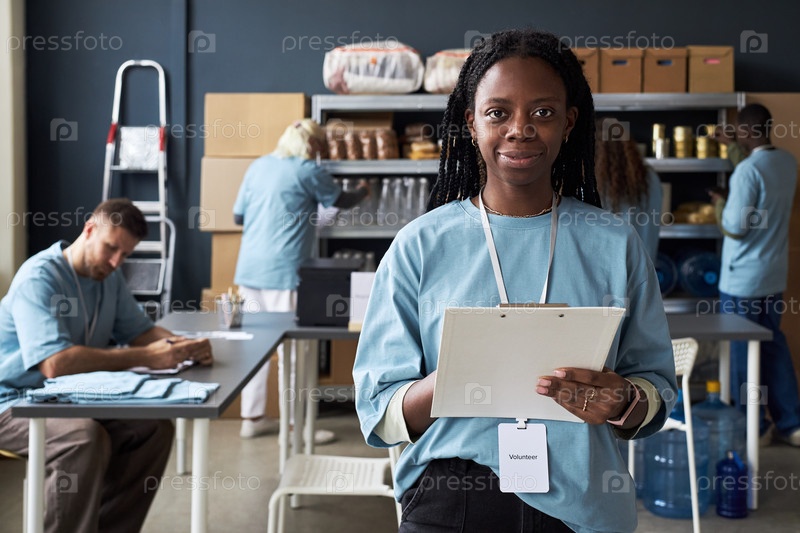 Портрет афроамериканской женщины, держащей доски в рабочей комнате