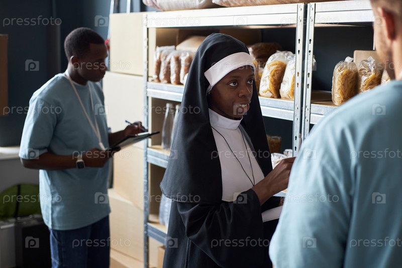 Помогающая рука: Доброволец, распределяющий еду в кладовой