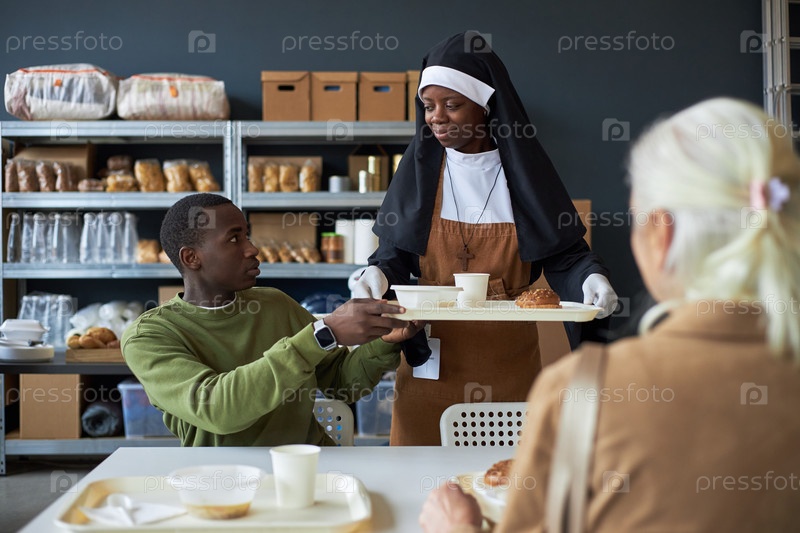 Сервирование завтрака на кухне сообщества волонтерами