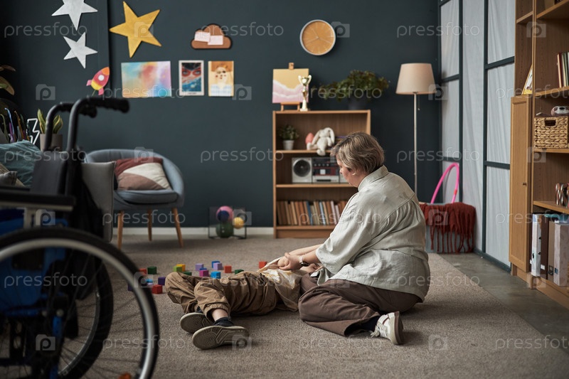 Забота и игра с ребенком-инвалидом в уютной гостиной