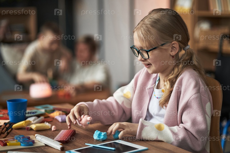 Молодая девушка занимается творческой игрой с Клэй