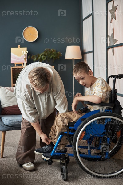 Помощь мальчику-инвалиду в инвалидном кресле дома