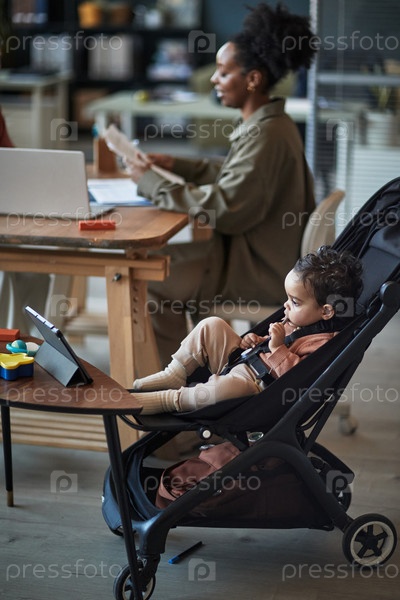 Работающий родитель управляет задачами, пока ребенок развлекается