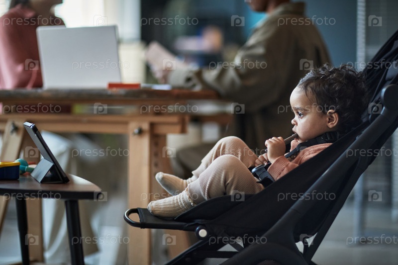 Ребёнок, наблюдающий за офисом Дискуссия из коляски